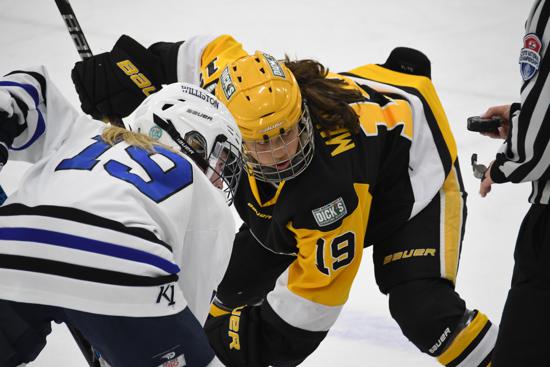 The Pens padded their lead early in the final frame as Mackenzie King converted a pass from Serena Slusarcyk.