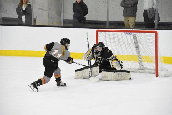 That was more than enough offense for goaltender Sophie Bellina made several spectacular saves including a great glove save against Maeve Reynolds late in the second period.
