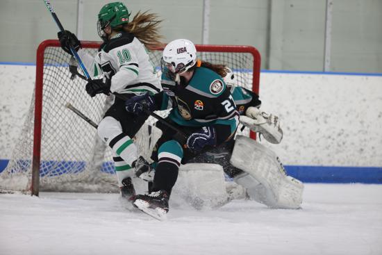 RYA at Selects Academy scored less than four minutes into the first period to get on the board first. On a shot sent in on Mattie Robitzer, a scrum ensued where Robitzer ended up on her back. A battle to clear the puck went on, but Caroline Kee came to the far side and pounded the puck into the back of the net.
