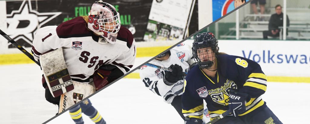 Shattuck-St. Mary’s tied the game at 10:32 in the final frame when Mary Derrenbacher scored, assisted by Sophie Morrow. Shattuck extended the lead to 3-2 when Kylie Amelkovich scored the game-winning goal after a scramble in front of the net.