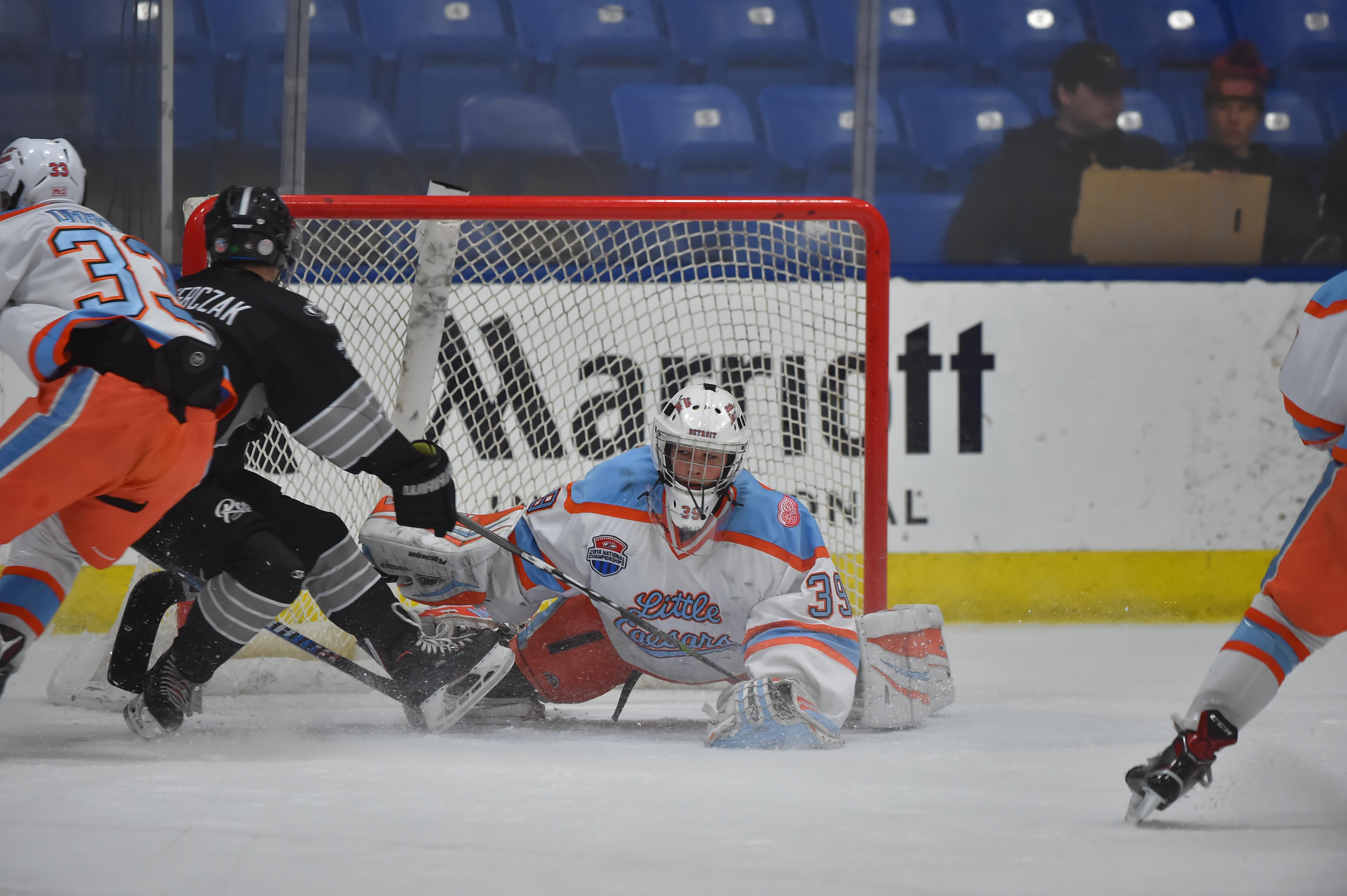 When you’re one of the top youth hockey programs in the country, there’s usually no shortage of talent up and down the lineup. And for Little Caesars that starts in the net where they have two talented puck stoppers. After Garvey was given the start in the tournament opener, Draper and long-time assistant coach Craig Roehl turned to Cooper Duncan against the Alaska Oilers. Today, the coaches decided to split the game down the middle, and once again both goalies were up to the task.